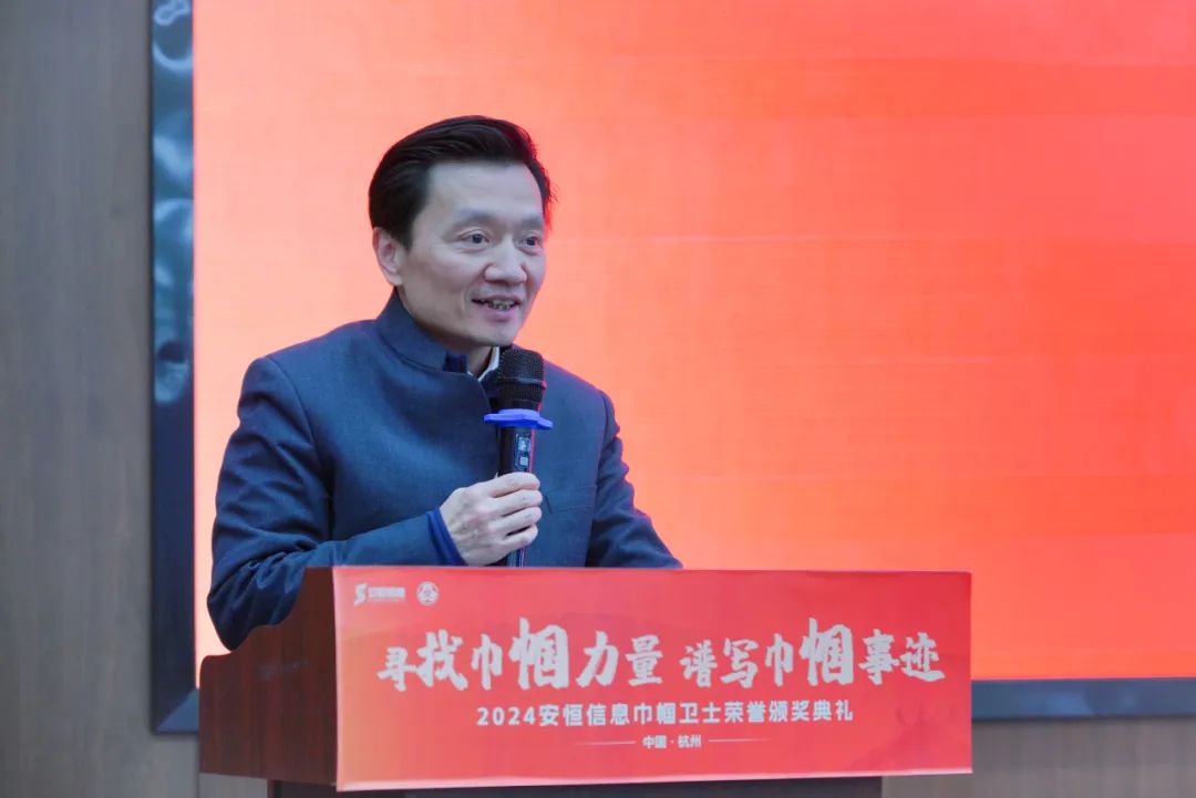 安恒信息董事長范淵發(fā)表致辭,他首先對安恒信息全體女性同胞表致以最誠摯的感謝和最高的敬意。范淵對“安恒信息巾幗衛(wèi)士”獲獎者表示祝賀,并對所有參與杭州亞運會和成都大運會的安恒巾幗衛(wèi)士們致以敬意。他提到,安恒信息巾幗衛(wèi)士們?yōu)楣景l(fā)展注入源源不斷的活力,也用實力證明了女性在網(wǎng)絡(luò)安全領(lǐng)域能夠獨當一面。最后,范淵也對全體女性同胞表示期待,相信她們會在安恒舞臺上盡情施展才華,維護國家網(wǎng)絡(luò)安全榮耀。