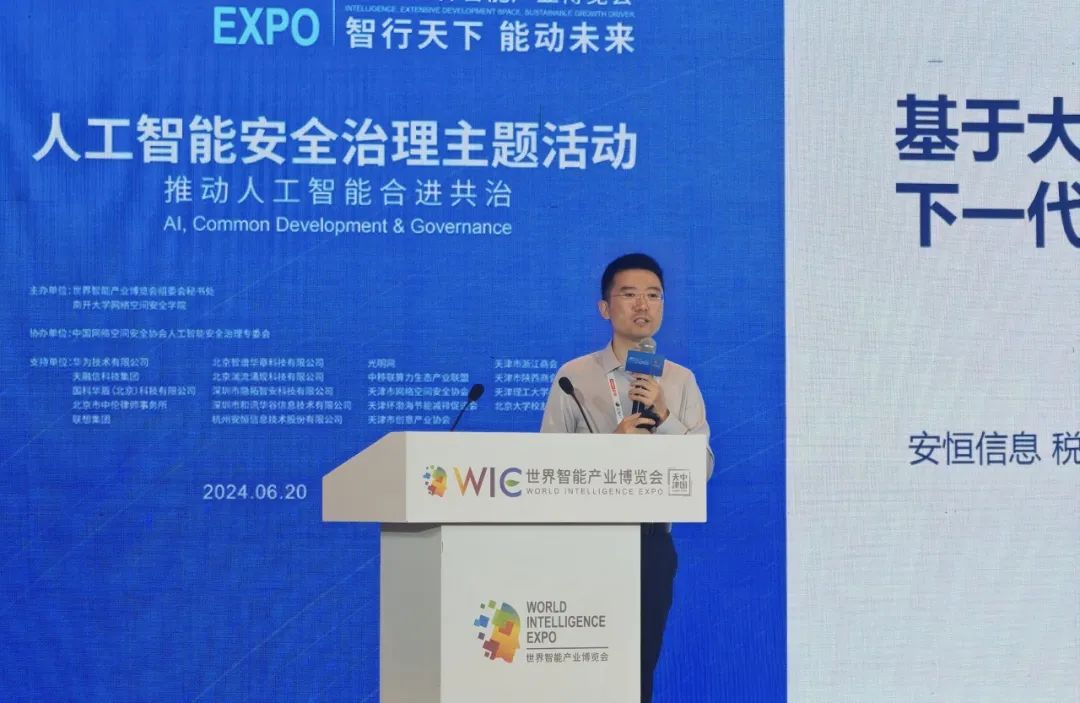 6月20日,全國唯一以智能產業(yè)為主題的國際性展會——2024世界智能產業(yè)博覽會在天津開幕。人工智能安全治理主題活動作為2024世界智能產業(yè)博覽會的專業(yè)級高端主題活動,聚焦“人工智能安全治理”,以“推動人工智能合進共治”為主題,由世界智能產業(yè)博覽會組委會秘書處、南開大學網絡空間安全學院主辦,中國網絡空間安全協(xié)會人工智能安全治理專委會承辦。安恒信息副總裁、研究院副院長稅雪飛受邀進行主題演講,展示了安恒信息人工智能創(chuàng)新發(fā)展成果如何推動數字安全行業(yè)健康合規(guī)可持續(xù)發(fā)展的思考和實踐。