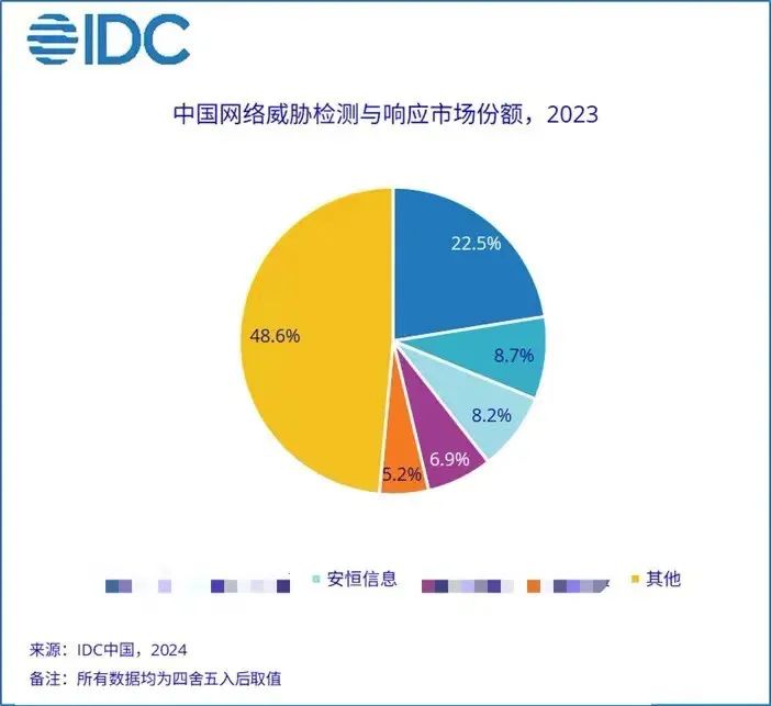 IDC于2024年6月正式發(fā)布了針對中國網絡威脅檢測與響應產品的市場份額研究報告——《中國網絡威脅檢測與響應市場份額,2023:NDR正在向更多技術棧延伸》(Doc # CHC50964624 ,2024年6月)。IDC數(shù)據(jù)顯示,從市場份額來看,安恒信息位列全國第三。安恒信息NDR依托在網絡攻防實戰(zhàn)中起到的關鍵作用,融入API安全等數(shù)據(jù)安全能力,為企業(yè)提供更加貼合業(yè)務需求的安全防護,成為企業(yè)網絡安全防護體系中的重要組件之一,成為恒腦·安全垂域大模型落地應用的重要平臺,并已經在最終客戶真實業(yè)務場景中擁有優(yōu)異的表現(xiàn)。