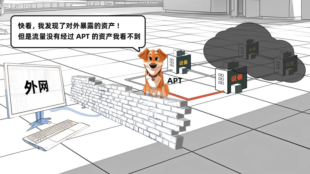 APT等流量設(shè)備能夠?qū)崟r(shí)監(jiān)控內(nèi)部資產(chǎn)對(duì)外暴露情況,但并非所有資產(chǎn)的流量都經(jīng)過APT,這導(dǎo)致所收集到的資產(chǎn)數(shù)據(jù)并不全面。