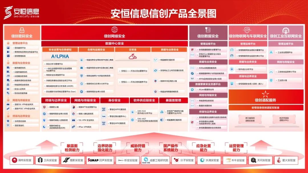 當(dāng)前,安恒信息在信創(chuàng)領(lǐng)域上實(shí)現(xiàn)重大突破,已實(shí)現(xiàn)基礎(chǔ)網(wǎng)絡(luò)安全產(chǎn)品、云安全產(chǎn)品、大數(shù)據(jù)安全類產(chǎn)品、商用密碼產(chǎn)品、SM產(chǎn)品的全面突破,形成網(wǎng)絡(luò)安全、數(shù)據(jù)安全、商用密碼應(yīng)用等綜合信創(chuàng)解決方案,實(shí)現(xiàn) 67 個品類 200余款型號的國產(chǎn)化規(guī)格適配。