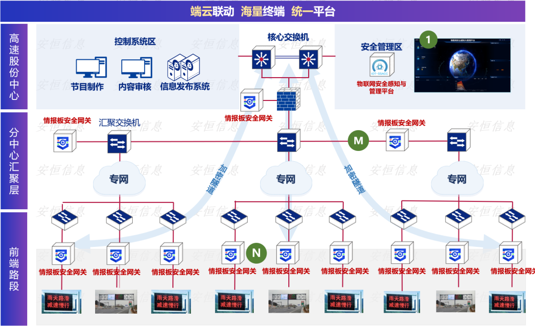 面對挑戰(zhàn),安恒信息攜手北方某高速股份公司,針對全長近3000公里的高速公路,近400塊情報板部署落地了一套端到端、多層防護(hù)的高速情報板安全體系。有效解決了高速情報板安全監(jiān)管的難題,為全國智慧交通安全建設(shè)提供參考樣例。