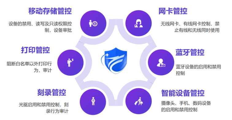 辦公智盾還可以管控打印機打印權(quán)限和刻錄機刻錄權(quán)限,并可對網(wǎng)卡、藍牙以及智能設(shè)備的使用進行管理,全方位控制外設(shè)使用行為。