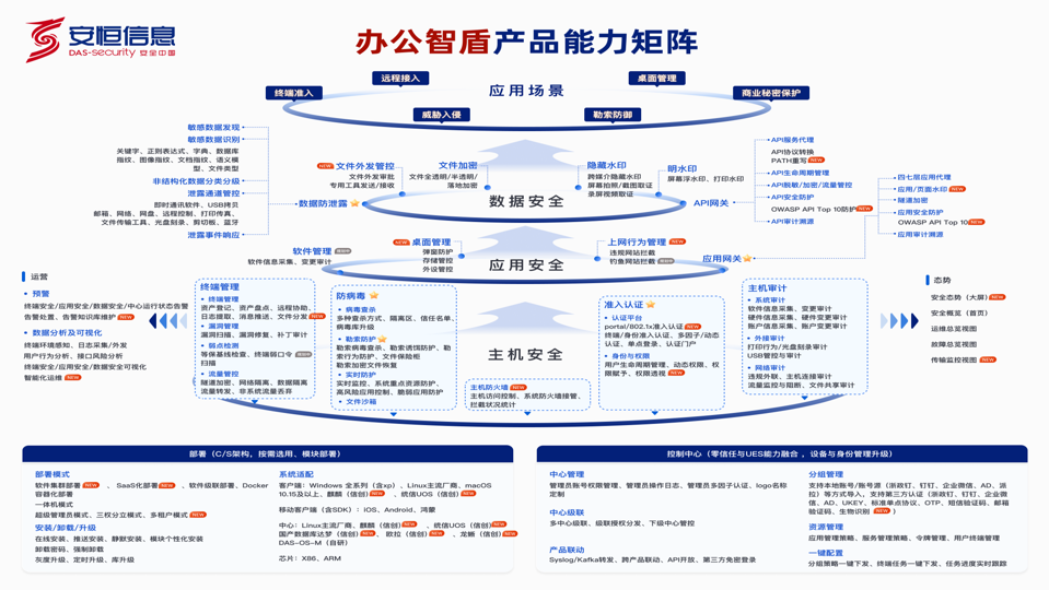 融合零信任、防病毒、主機審計、弱點檢測、文件加密保護、數(shù)據(jù)防泄漏、基線檢查、資產(chǎn)盤點、桌面管理、主機防火墻、隱形水印、綠色上網(wǎng)、網(wǎng)絡(luò)準入、虛擬桌面等多種業(yè)務。