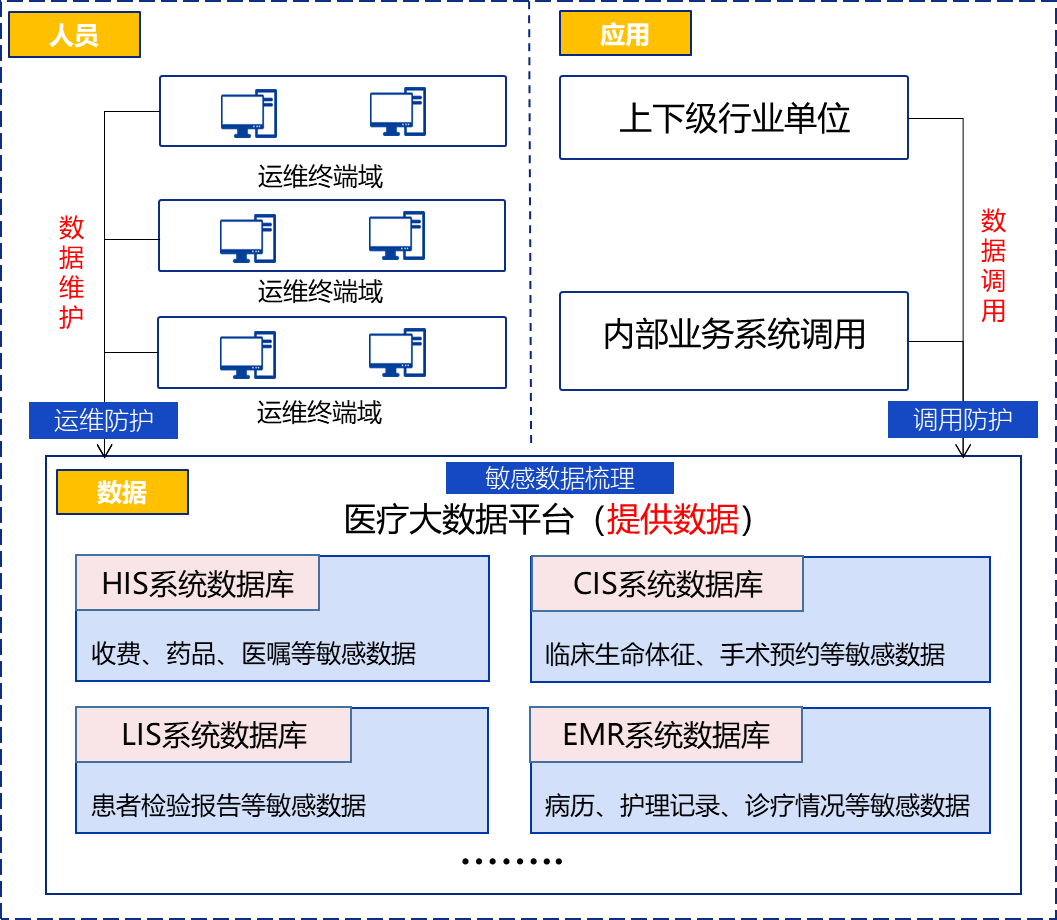我們醫(yī)院剛建立了醫(yī)療大數(shù)據(jù)平臺(tái),里面匯集了大量的個(gè)人數(shù)據(jù)和醫(yī)療數(shù)據(jù),一旦發(fā)生數(shù)據(jù)安全事件,會(huì)造成隱私數(shù)據(jù)泄露和醫(yī)療服務(wù)停擺,后果真是不堪設(shè)想,愁呀,做好平臺(tái)數(shù)據(jù)的安全使用可真是太難了!