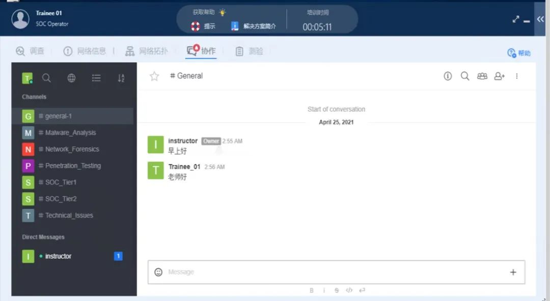 應(yīng)急演練實驗室包含內(nèi)部協(xié)作工具。工具可實現(xiàn)不同SOC人員(例如:操作員、分析師和逆向工程師等)之間的協(xié)作。學員和講師可直接進行溝通,討論技術(shù)問題,學員之間可以分享見解、訓練截圖和問題討論。同時,講師可以對學員的信息添加評論批注,對學員進行一對一回復(fù)并為每個主題打開一個新的回復(fù)窗口。