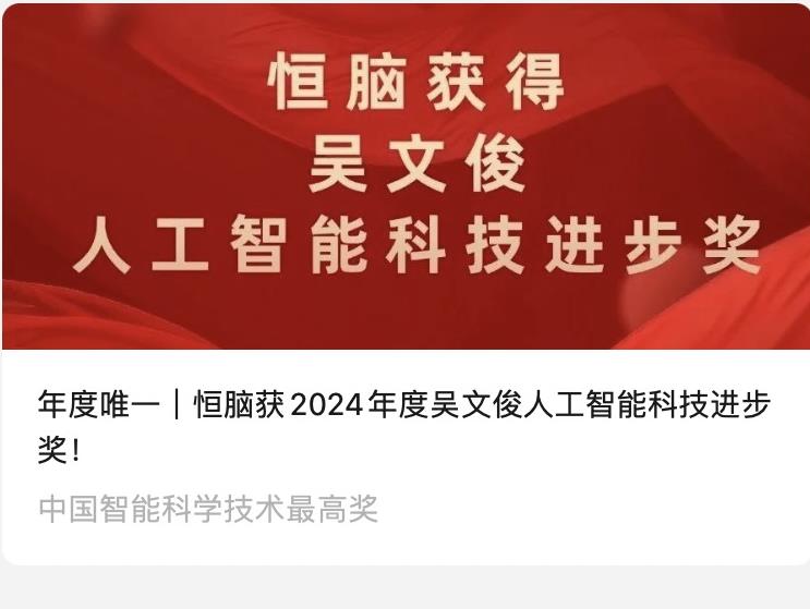 年度唯一|恒腦獲2024年度吳文俊人工智能科技進(jìn)步獎(jiǎng)!