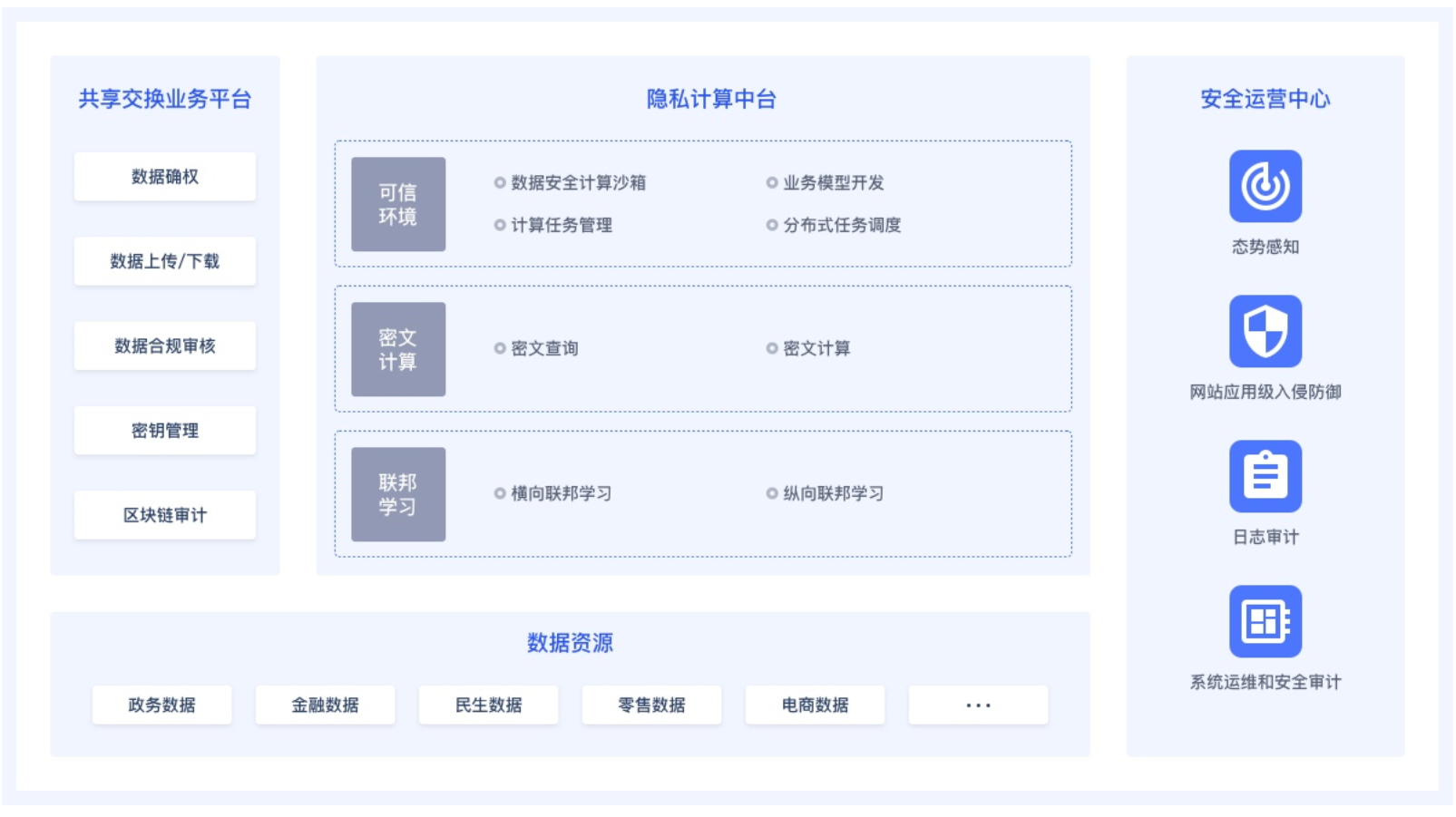 在數(shù)字經(jīng)濟時代,全球數(shù)據(jù)資源呈現(xiàn)指數(shù)級爆炸式增長,成為驅(qū)動全球經(jīng)濟社會發(fā)展的核心生產(chǎn)要素。然而數(shù)據(jù)本身并不能產(chǎn)生價值,只有不斷流通、交換、共享才能產(chǎn)生價值。依托數(shù)據(jù)安全島平臺,可以在保障數(shù)據(jù)安全可控、數(shù)據(jù)隱私不泄露的情況下促成多方數(shù)據(jù)的共享交換和融合計算。幫助企業(yè)創(chuàng)造新的數(shù)據(jù)交易模式,實現(xiàn)互利共贏。