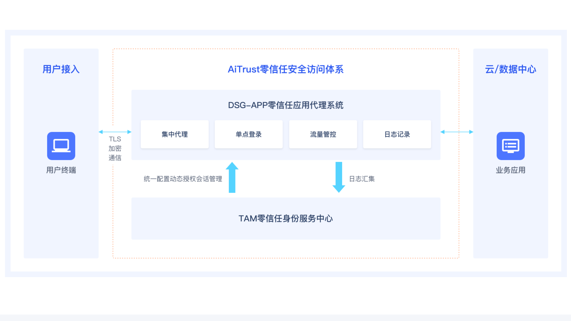 聯(lián)動(dòng)TAM零信任身份服務(wù)中心,鑒別用戶身份及權(quán)限并實(shí)施訪問控制策略。
