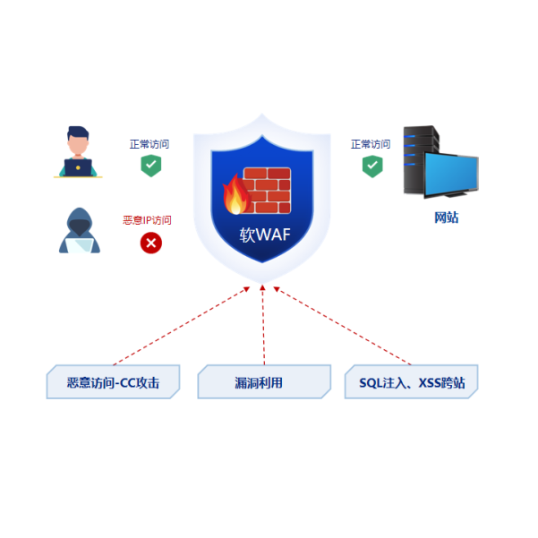 自研軟waf引擎,針對網(wǎng)站常見的 SQL注入攻擊、XSS跨站、Web容器及應用漏洞利用(如文件名解析漏洞防護 )進行實時防護