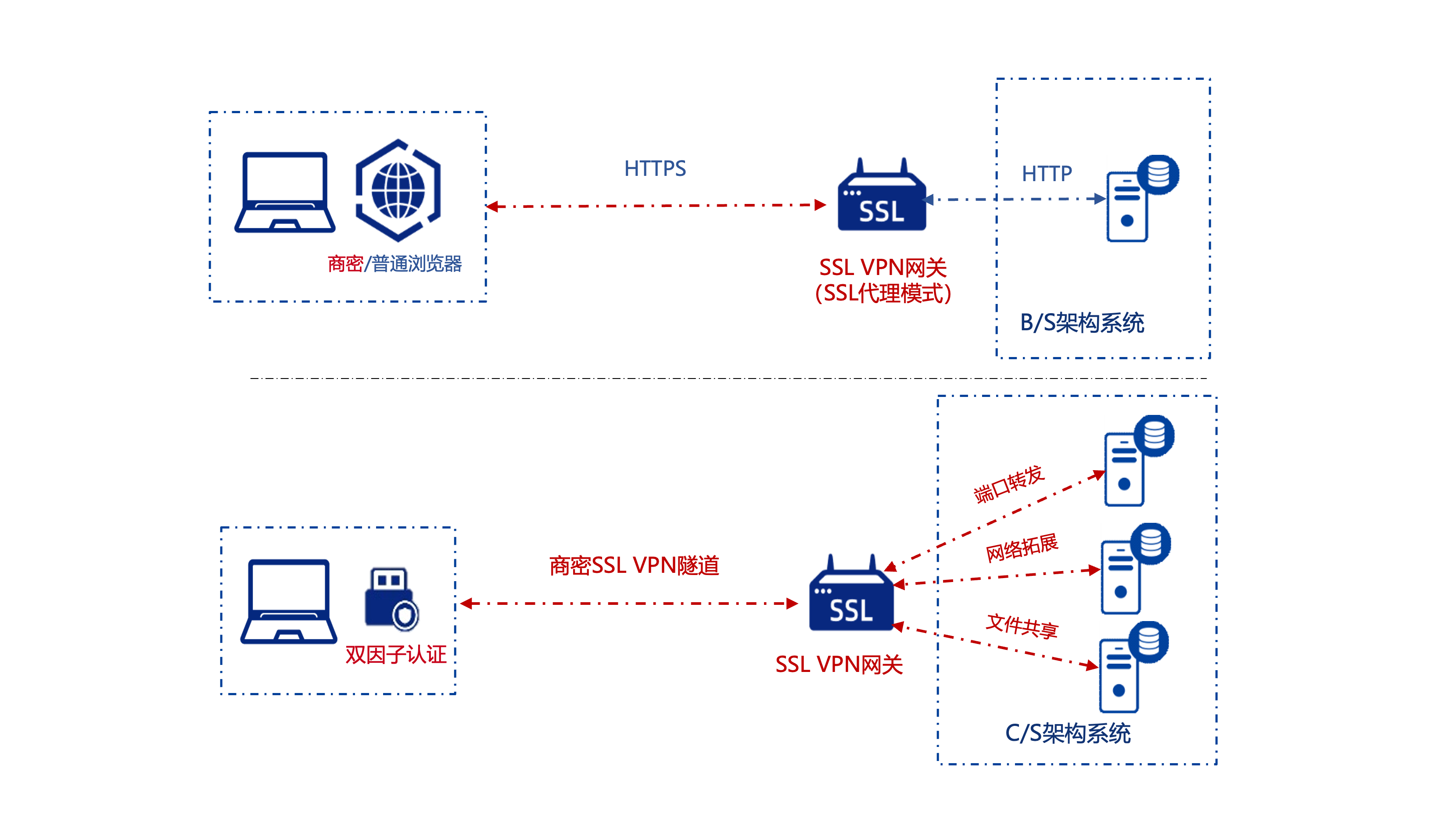 支持L3 VPN實(shí)現(xiàn)TCP\UDP的加密傳輸,支持L7層應(yīng)用代理