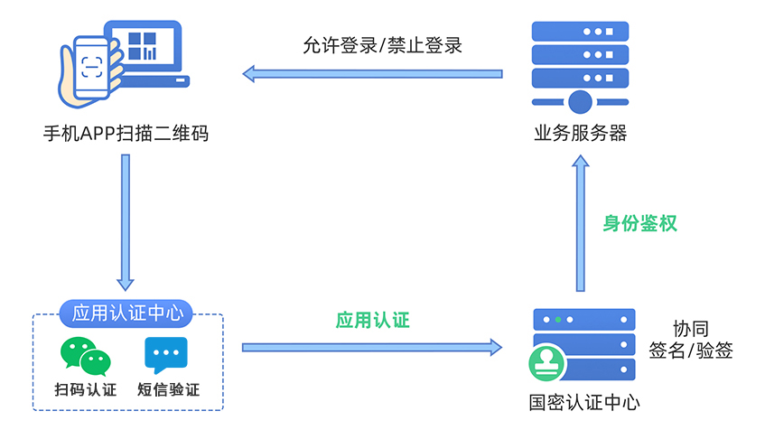 支持短信或掃碼結(jié)合協(xié)同簽名的身份認(rèn)證、支持基于USBKEY的數(shù)字證書身份認(rèn)證