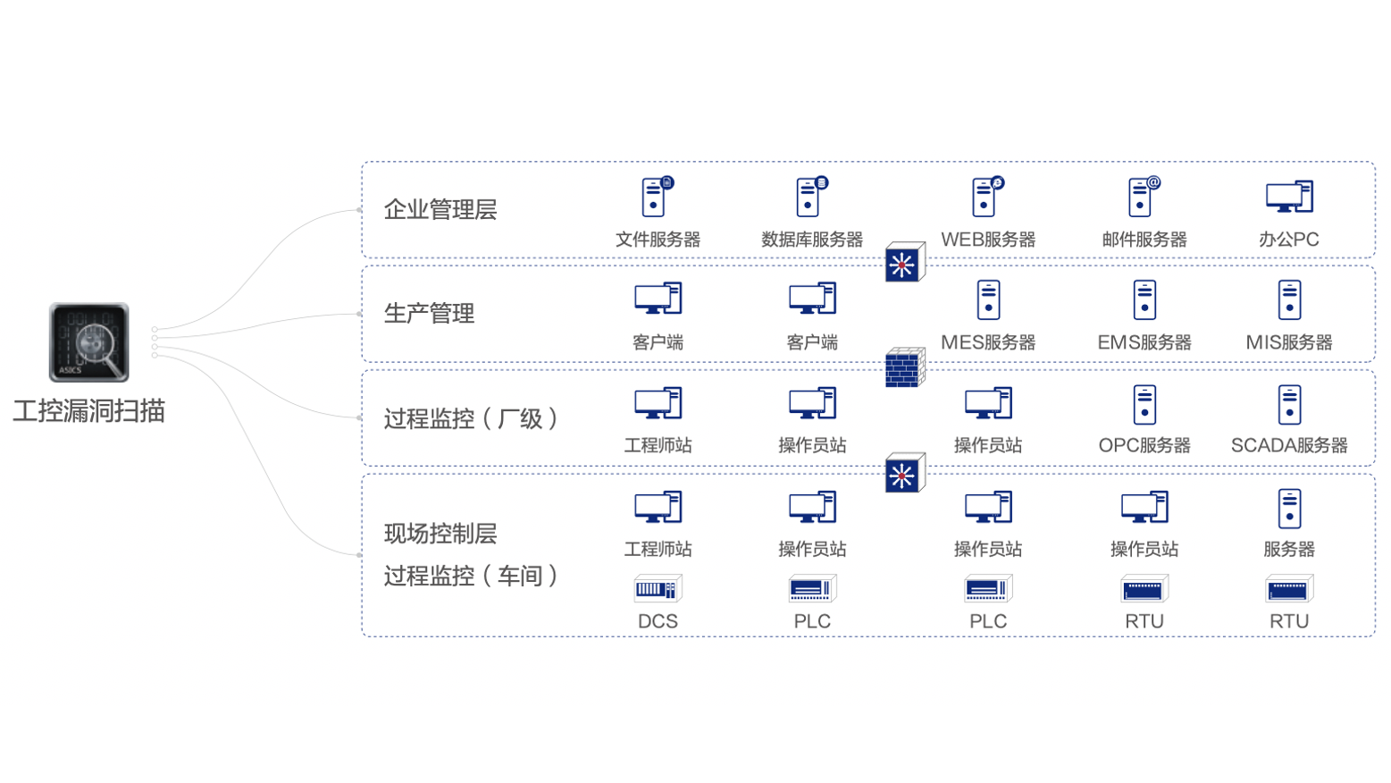 支持覆蓋西門(mén)子、GE、施耐德等20+主流工控廠商的PLC、RTU、DCS、SCADA、HMI、上位機(jī)軟 件、數(shù)據(jù)采集模塊、DTU、繼電保護(hù)裝置在內(nèi)的多種工業(yè)控制設(shè)備及系統(tǒng)的識(shí)別掃描與漏洞檢測(cè)。
