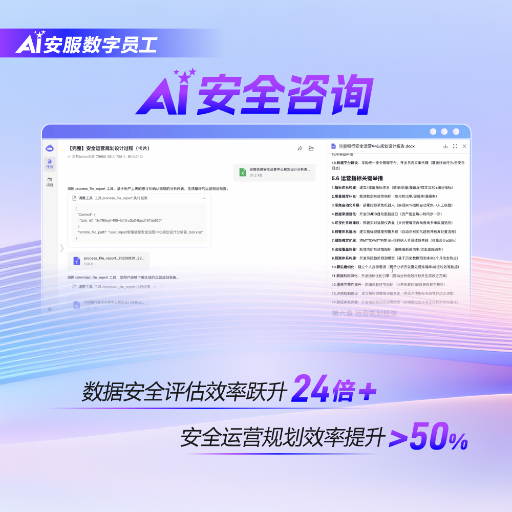安全咨詢數(shù)智化,24倍高效風(fēng)險評估,智能運(yùn)營規(guī)劃,定制擴(kuò)展守護(hù)全行業(yè)!